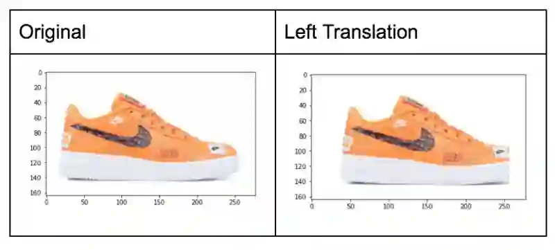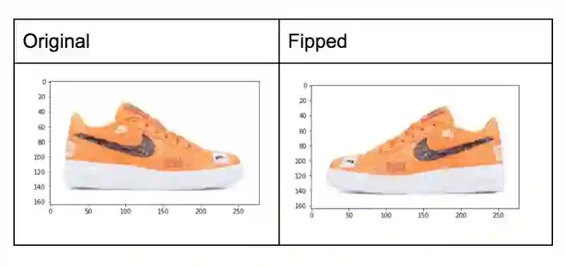 下面的模型可以被认为是看到左鞋而不是右鞋,因此通过这种数据增加,模型对于看到鞋的潜在变化变得更加健壮。