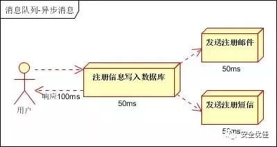 场景说明:用户注册后,需要发注册邮件和注册短信。传统的做法有两种:串行的方式和并行方式。