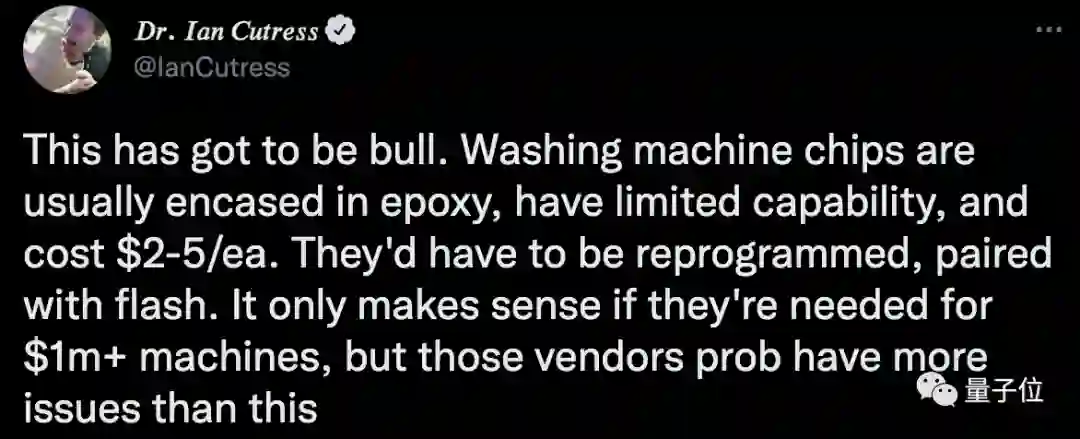 回收洗衣机芯片的成本之高,只有用于生产售价超过100万美元的产品上才make sense。