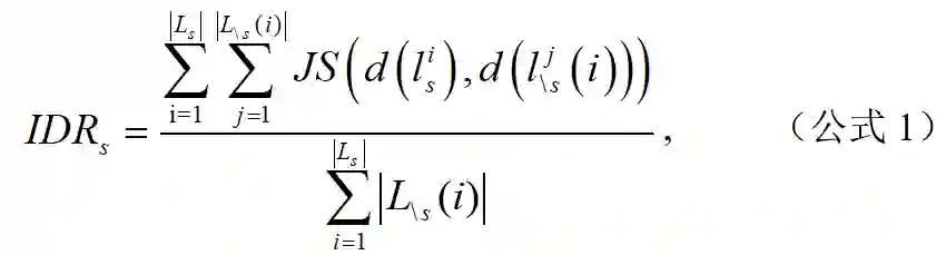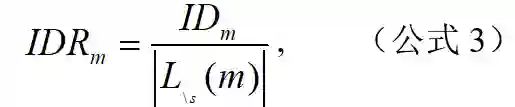 我们将有效方法 m 对应的原始文献表示为 l_m,文献 l_m 对应的研究场景簇为 s,三年内引用了有效方法 m 且场景簇非 s 的文献集合为 。有效方法 m 对研究场景簇的影响程度 ID_m 和影响程度比率 IDR_m 计算公式如下: