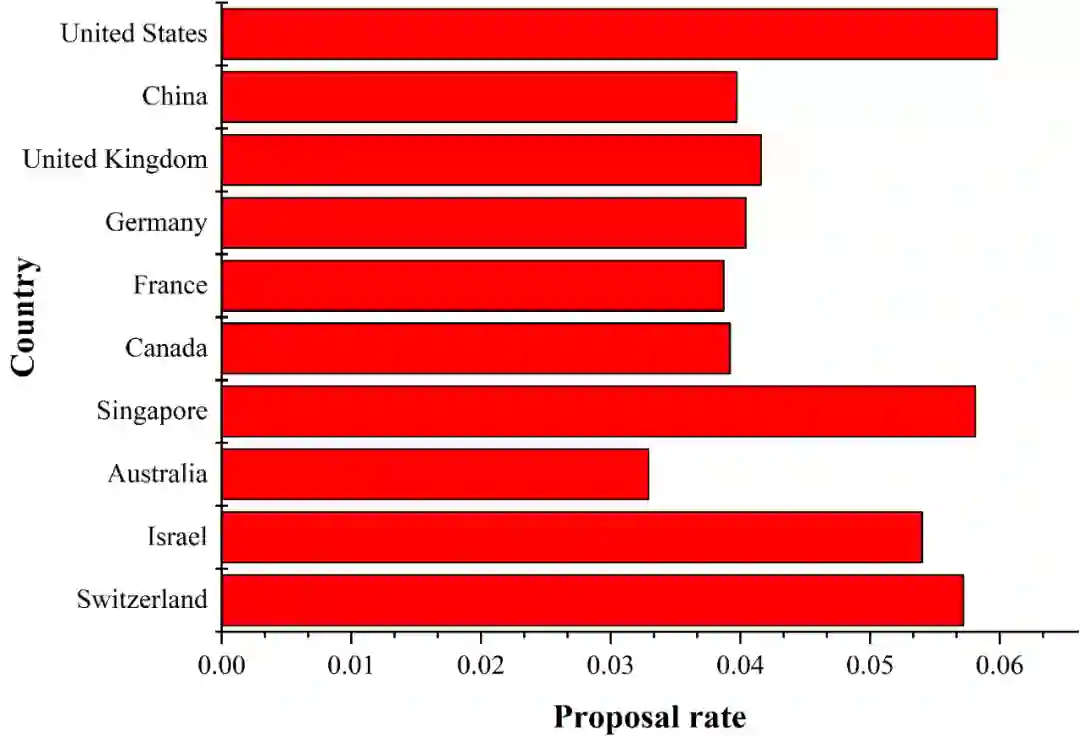 Figure 4:追溯到的由 CCF corpus 提出的有效方法在不同国家中的数量分布