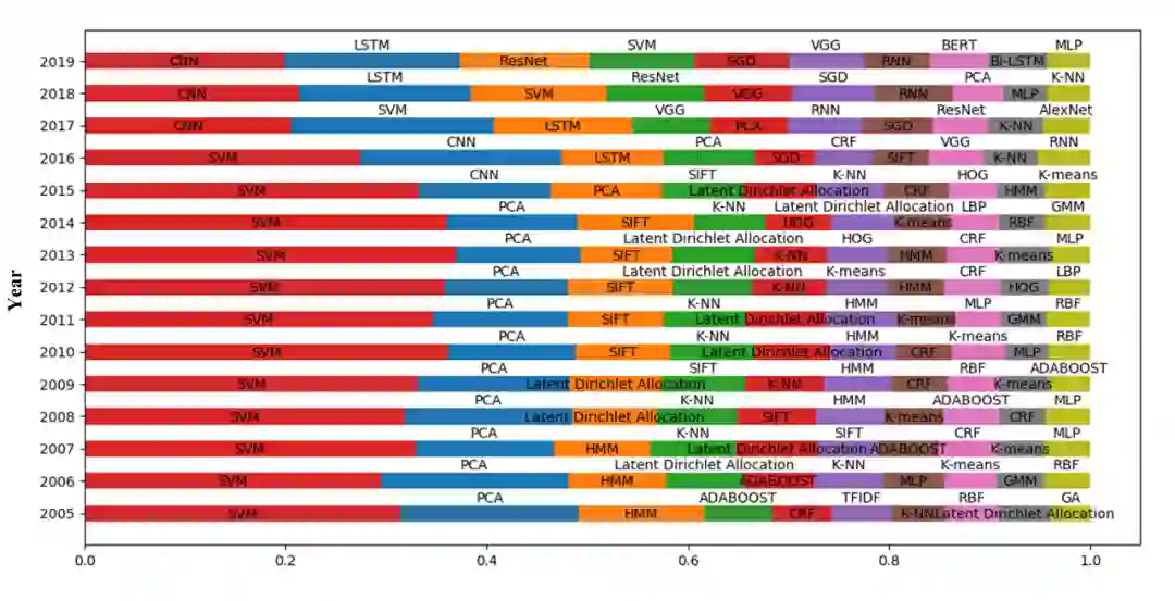 1) 除了「C4.5」、「ID3」等特殊方法以外,其余方法去除数字。如果方法是复数形式,则将其转换为单数形式。例如,「SVMs」归一化成「SVM」。