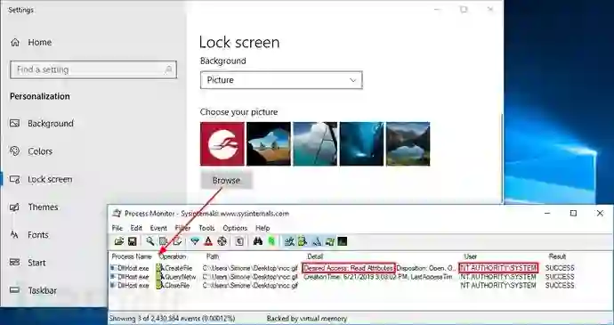 作为第一种方法,我们研究了使用API或Windows命令实用程序来更改配置文件图像 - 但并没有成功。然而,我们发现了通过对锁屏图像的操作可以暴露出相同的攻击路径。