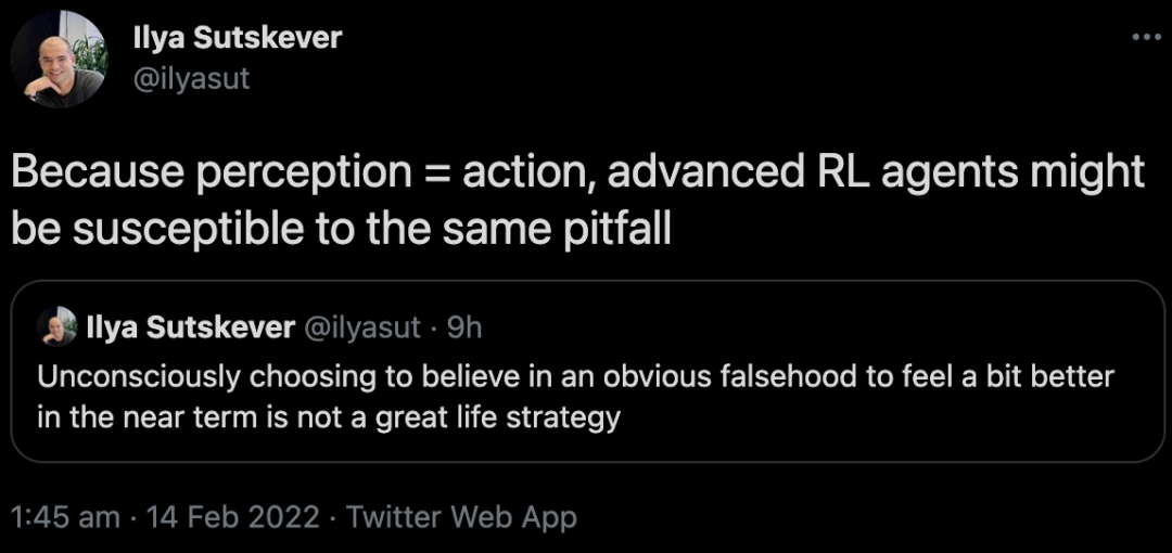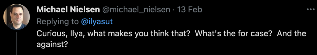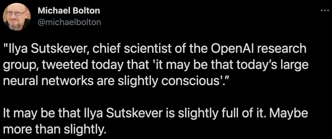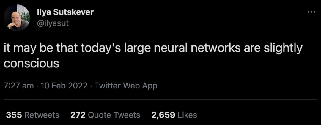 2月10日,伊利亚·萨茨克维尔(Ilya Sutskever)发推表示:「现在的大型神经网络可能已经有微弱自主意识了。」