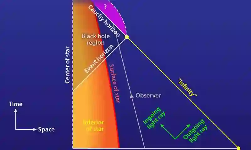 正如物理学家们所言,随着观察者不断接近视界,时间会因为强引力场而减慢(相对地球上人所经历的时间)。就像光线一样,任何遇到黑洞的东西都将不可避免地向柯西地平线坠落,观测者也会向柯西视界坠落,但他最终会看到所有的这些能量都在同时“进入”柯西视界内。事实上,所有进入黑洞的能量都在同时“进入”柯西视界。