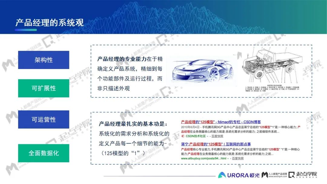 1:产品经理系统化的分析用户需求,以及系统化的去构建定义一个产品的能力。