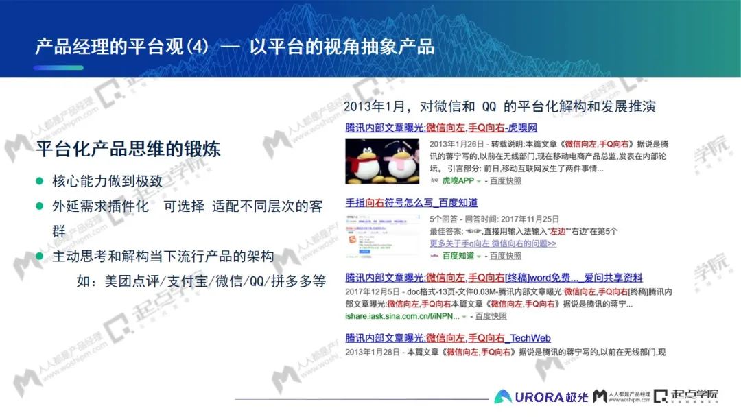 我们也去会让产品经理去主动的去解构当下流行的这些产品的平台架构,像美团支付、美团点评、支付宝、拼多多等,去锻炼平台化,去解剖它的思维。