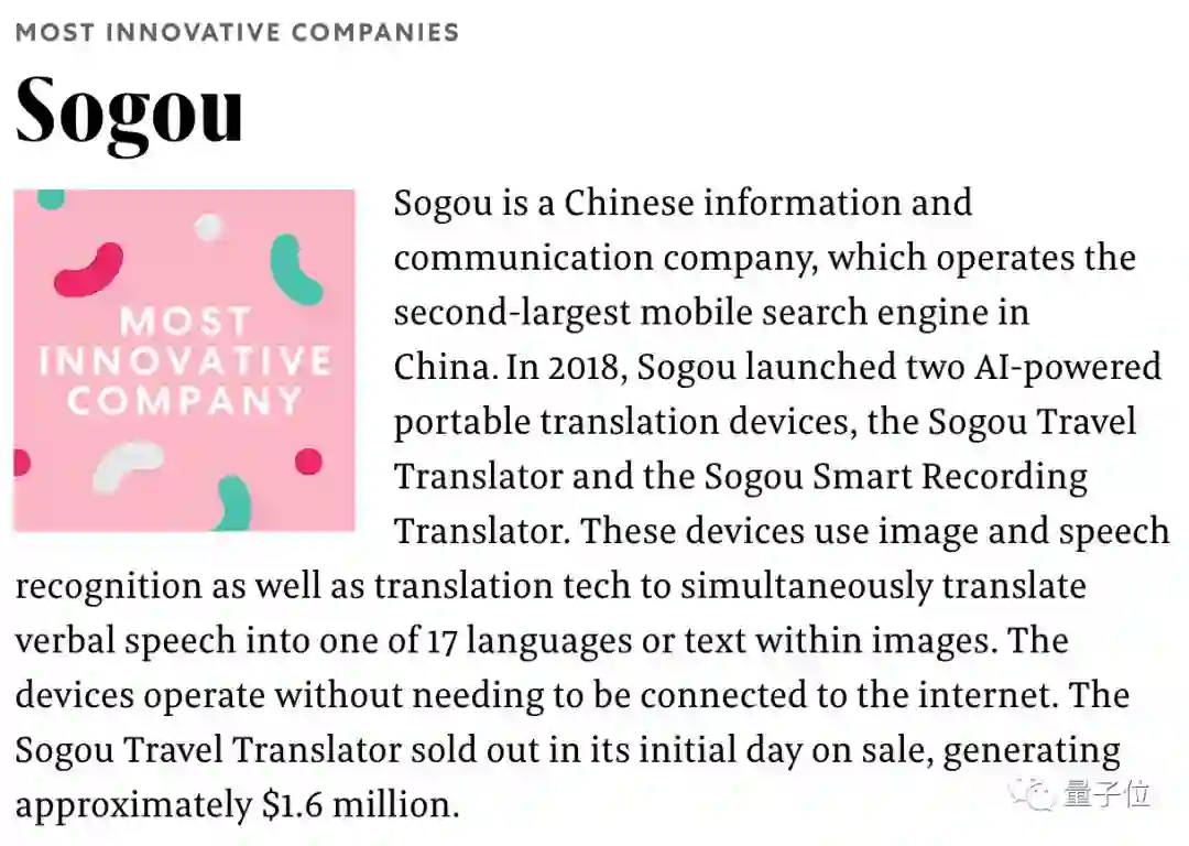 最近,美国知名商业杂志《Fast Company》评出了全球50家最具创新力公司,搜狗入选中国地区前十。