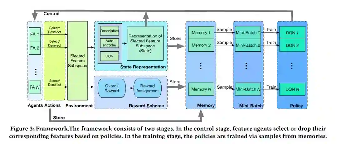 摘要:特征选择是机器学习的预处理步骤,它试图为后续的预测任务选择最相关的特征。有效的特征选择可以降低维数,提高预测精度,提高结果的可理解性。从子集空间中寻找最优特征子集是一个非常具有挑战性的问题,因为子集空间可能非常大。在已有研究的基础上,增强学习为搜索策略的全局化提供了新的视角。针对特征选择问题,提出了一种多智能体增强学习框架。具体来说,我们首先用一个增强学习框架来重新制定特征选择,将每个特征视为一个智能体。然后,通过三种方法得到环境状态,即为了使算法更好地理解学习过程,本文采用了统计描述、自动编码器和图卷积网络(GCN)。我们展示了如何以一种基于图的方式学习状态表示,这种方法不仅可以处理边的变化,还可以处理节点逐步变化的情况。此外,我们还研究了如何通过更合理的奖励方案来改善不同特征之间的协调。该方法具有全局搜索特征子集的能力,并且由于增强学习的性质,可以很容易地适应实时情况(实时特征选择)。此外,我们还提出了一种有效的加速多智能体强化学习收敛的策略。最后,大量的实验结果表明,该方法比传统方法有显著的改进。