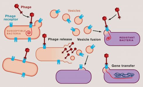 这是一篇关于细菌通过胞外膜泡传递噬菌体受体获得噬菌体敏感性的研究性文章。
