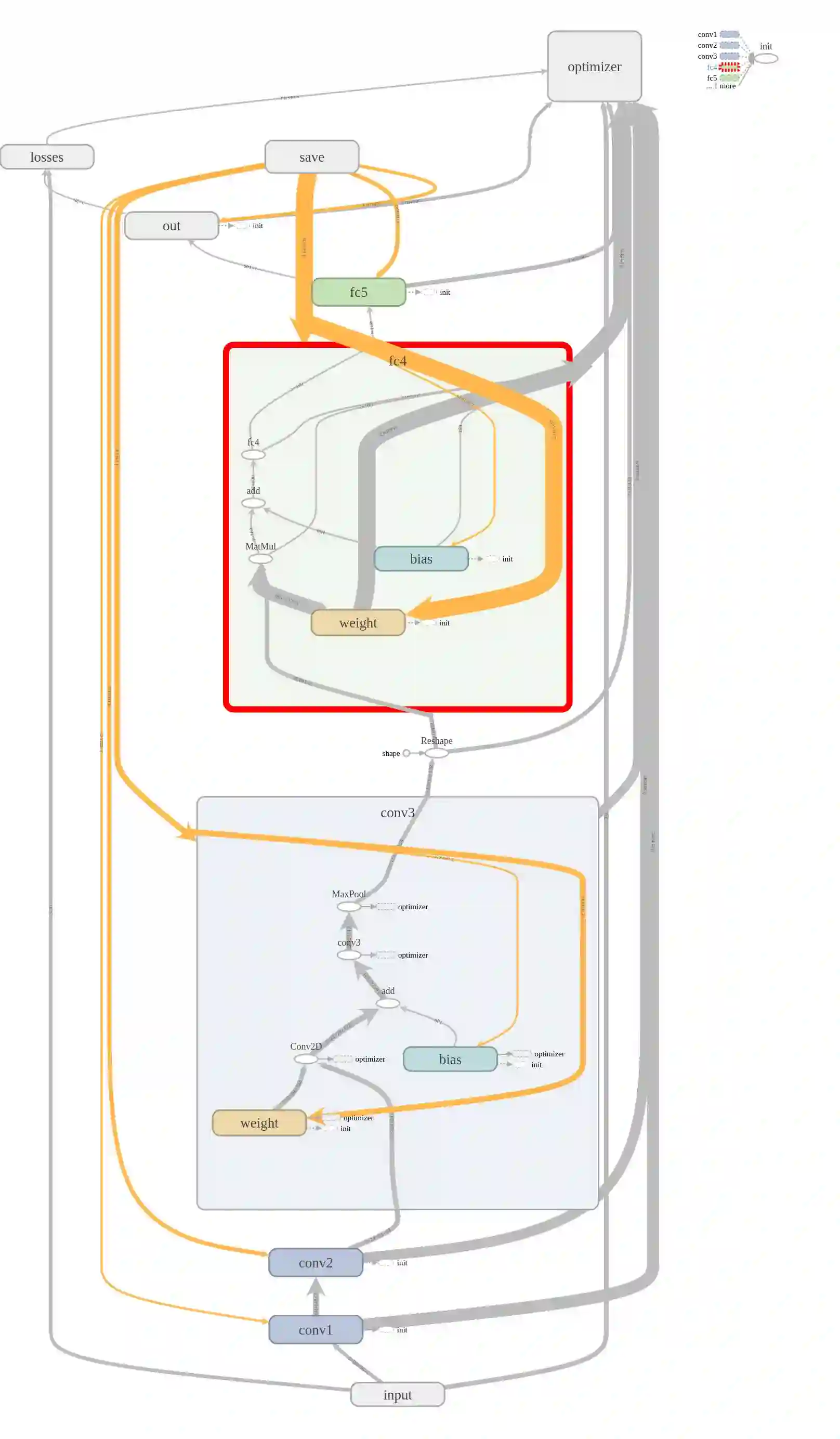 封装好借口之后,我们可以通过上面简单的代码,完成模型的训练。下图是 tensorboad 中可视化的网络结构、loss 的统计以及模型在测试图片上的效果