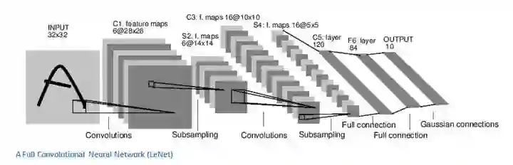 卷积神经网络(Convolutional Neural Network, CNN)的起源可以追溯到上世纪 60 年代。生物学研究表明,视觉信息从视网膜传递到大脑中是通过多个层次的感受野 (Receptive Field) 激发完成的,并提出了 Neocognitron 等早期模型。1998 年,深度学习三巨头之一的 Lecun 等,正式提出了 CNN,并设计了如下图所示的 LeNet-5 模型。该模型在手写字符识别等领域取得了不错的结果。