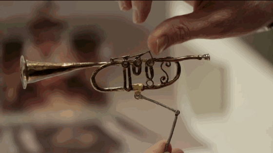 所有道具,都是按比例缩小制作的,比如这个小号,是真的可以吹的!