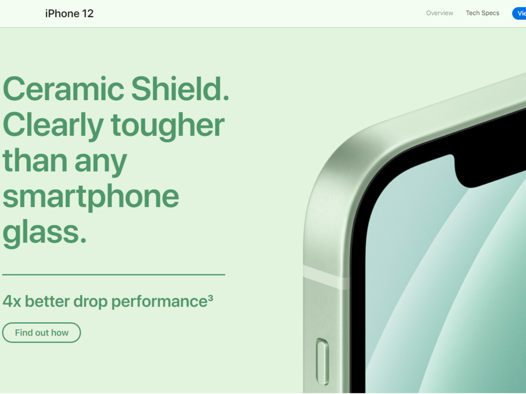 “iPhone 12 Pro 精选优质材料打造,精美的新设计采用精致平坦的边缘、手术级不锈钢边框、精密打磨的亚光质感玻璃背板,并首度引入了极其耐用的超瓷晶面板。”