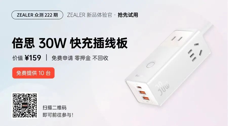 桌面插线版,也有氮化镓黑科技!小体积多接口的「倍思 30W 快充插线板」现已上线 ZEALER 众测!实时监测电路故障,用电安全又省心;交/直流六口供电,手机家电都能充;第五代氮化镓技术,体积更小发热更少;还有全新触控开关+智慧灯显,大小设备安心充...扫上方二维码或戳左下角「阅读原文」即可前往参与。
