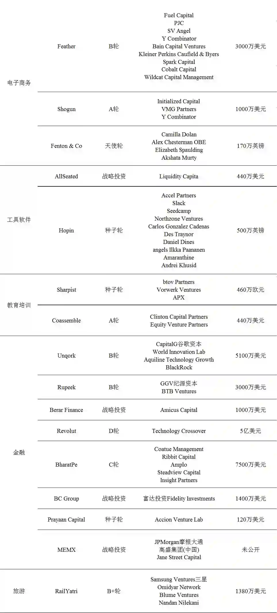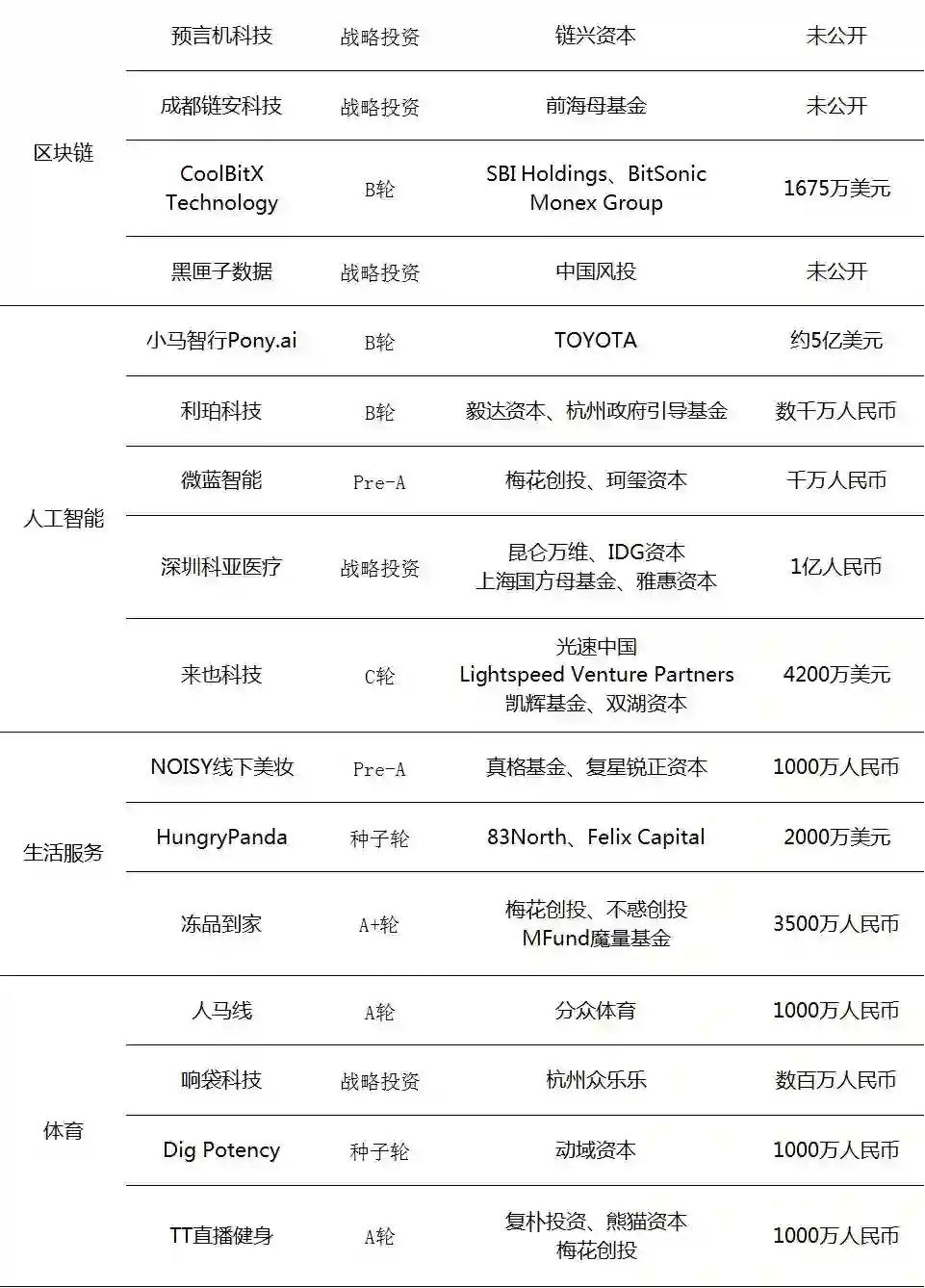 单笔过亿人民币事件中,教育培训3起,人工智能2起,区块链、电子商务、工具软件、生活服务、医疗健康、旅游、企业服务各1起。