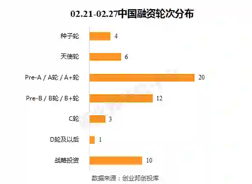 本周融资事件的融资轮次主要集中在前期(种子轮、天使轮、A轮),共30起,其中A轮有20起;战略投资本周有10起。