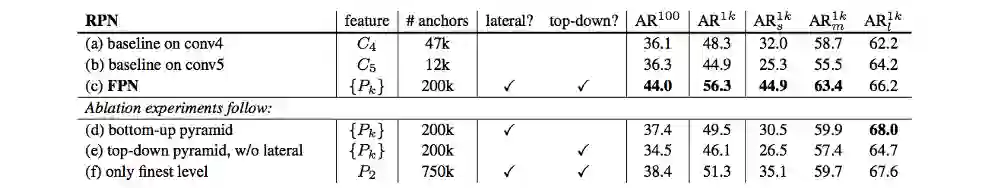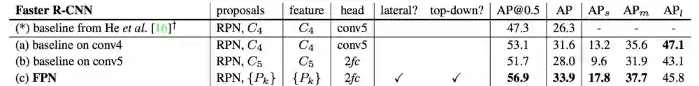 FPN搭配RPN,提升AR(average recall,平均召回)至56.3,相比RPN基线提升了8. 在小目标上的提升更是达到了12.9.