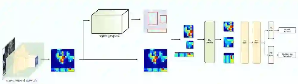 首先简短地概览下Fast R-CNN和Faster R-CNN的数据流。它基于特征映射层创建ROI(感兴趣区域)。然后使用ROI和特征映射层创建特征片,以传给ROI池化。