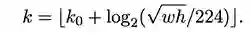 其中,w和h为ROI的宽度和高度,k0 = 4,k对应FPN中的Pk层。