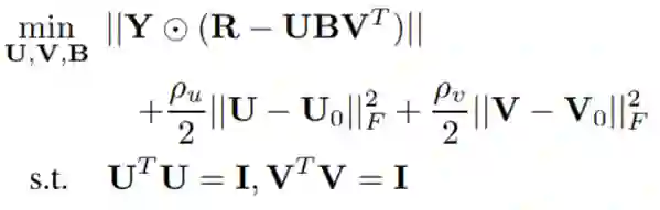 这是一篇很早期做跨领域推荐的方法,准确地说该方法不仅可以用于跨领域推荐还可以用于多任务推荐等推荐任务。具体来说,该方法将两个领域的数据联合起来进行矩阵分解,通过共享的中间变量V(可以是共享的用户也可以是物品)实现知识迁移的效果。