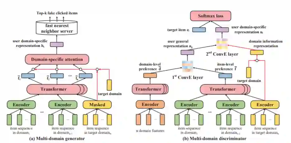 这篇文章是微信看一看团队应用在召回的工作,该方法将领域编码为domain embedding,利用到用户在不同领域的行为序列,使用transfomer来编码用户在不同领域的行为。另外还提出了一种基于对抗的筛选样本的方法。