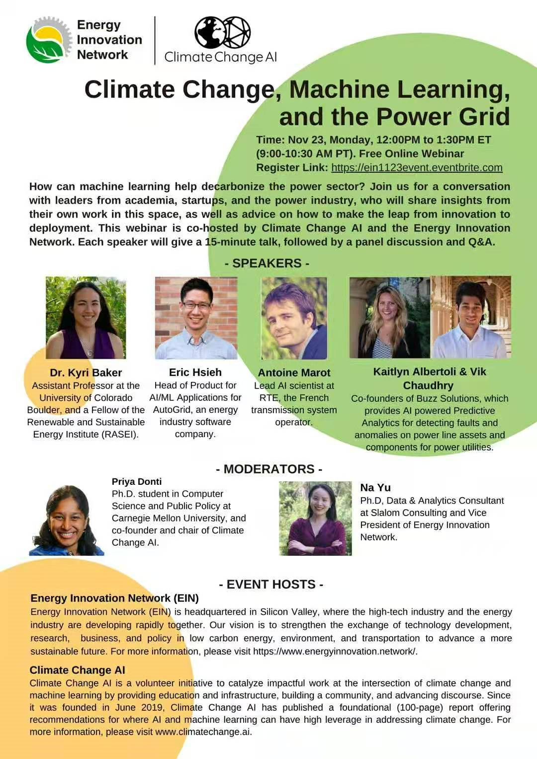 电力行业是如何通过人工智能减碳排放量?能源创新网络(Energy Innovation Network)携手 Climate Change AI 将共同举办一个线上 Panel Discussion 进行深度探讨。