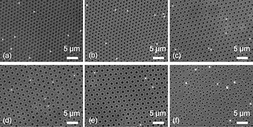 图1. 示踪荧光粒子在不同晶格背景和无序背景中扩散的显微图片。
