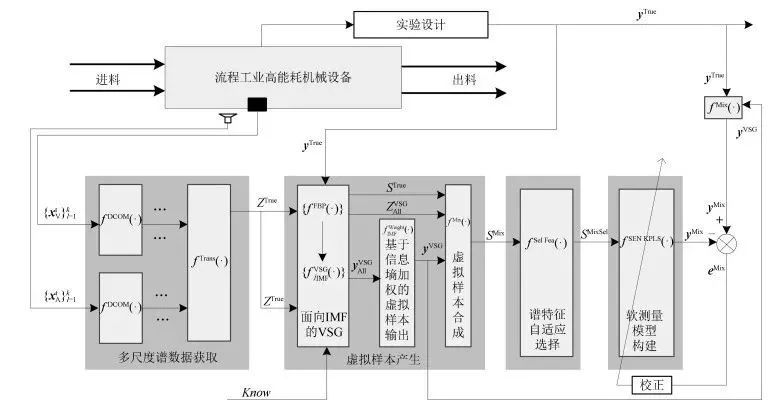 本文提出一种基于虚拟样本生成技术的多组分机械信号建模方法.首先,将机械信号自适应分解为具有不同时间尺度的平稳子信号并变换为多尺度谱数据;接着,采用适合于小样本高维数据建模的改进选择性集成核偏最小二乘算法构建面向真实训练样本的基于可行性的规划模型,提出一种综合先验知识和FBP模型等手段面向高维谱数据的VSG技术,用以弥补真实训练样本的短缺问题;然后,基于互信息对由真实和虚拟训练样本组成的混合建模数据进行自适应特征选择;最后,基于约简的混合训练样本采用SENKPLS构建软测量模型.以近红外谱数据和磨矿过程实验球磨机的筒体振动/振声信号验证所提VSG技术和面向多组分机械信号建模方法的合理性和有效性.