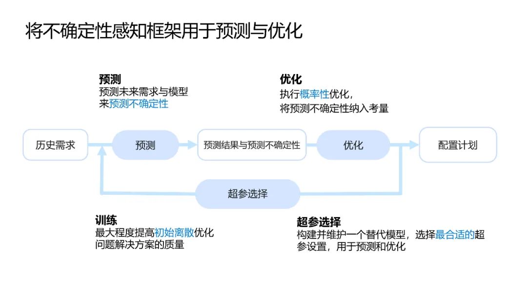 不过,依然面临一些挑战,比如可预测的 VM 需求量少,存在大量的 VM 类型和差异化 VM 需求模式。此外,预测不确定不可避免,难以纳入优化体系中。决策变量和约束条件是离散,且离散域的优化是 NP - 难问题。对此,微软亚研提出了全新的方法框架,将不确定性感知框架用于预测与优化。结果表明,微软亚研提出的方法实现了相较于其他竞品更优的表现。