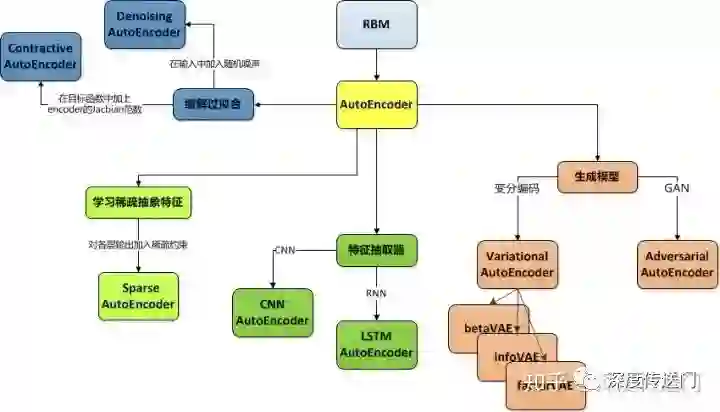 AutoEncoder作为NN里的一类模型,采用无监督学习的方式对高维数据进行高效的特征提取和特征表示,并且在学术界和工业界都大放异彩。本文主要介绍AutoEncoder系列模型框架的演进,旨在梳理AutoEncoder的基本原理。首先上图,然后再对他们进行逐一介绍。