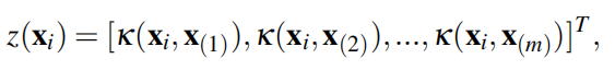 定义完学习目标之后,作者使用核技巧来利用线性模型的优势,同时使它们能够捕获非线性数据模型。具体而言,通过基于锚点的核函数将原始空间中的数据映射到特征空间,然后数据Xi有了一种新的表示,如下: