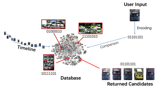 为了释放强约束的需要,作者将哈达玛矩阵的每一列作为每个类标签的目标码,它本质上满足哈希码的几个期望性质。由于目标编码是已知的,不需要去设计很复杂的约束性条件。相比于目前已有的最佳方法,所题方案以更少的训练时间,在不同的数据集(CIFAR-10, Places205, MNIST、NUS-WIDE四个经典数据集)下获得10%~30%的精度增长,该技术可应用于大规模城市视觉目标布控、特定网络产品查找等。