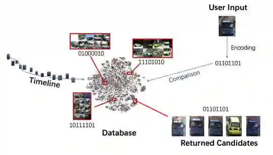 即哈希算法将输入数据映射到一个离散的汉明空间,每一个数据点用一串二值码表示。汉明距离可以通过异或操作进行快速计算,因此使用哈希码对数据库进行穷尽检索,时间复杂度也能满足应用要求。
