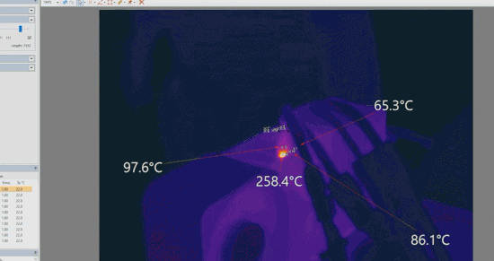 把 12VHPWR 电源线连接到 RTX 4090 的插口上,但不插好,短短几分钟之后,松动连接的位置就产生了 250℃ 以上的高温,导致连接器熔化,冒出烟雾和气泡。