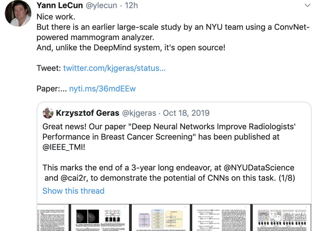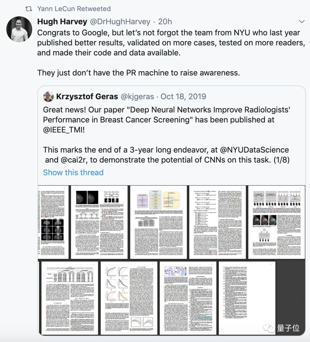 别忘了去年NYU发表了更好的结果,基于更多的案例,和更多人数的人类阅片做比较,而且模型和数据开源。