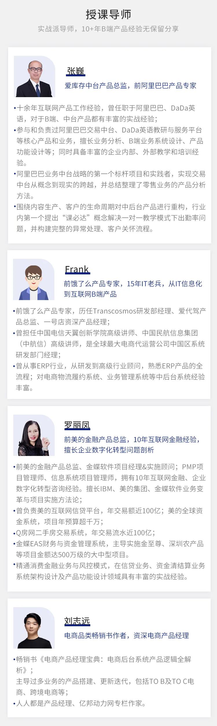 1、4位拥有10年+实战经验的老师,带你征战B端产品