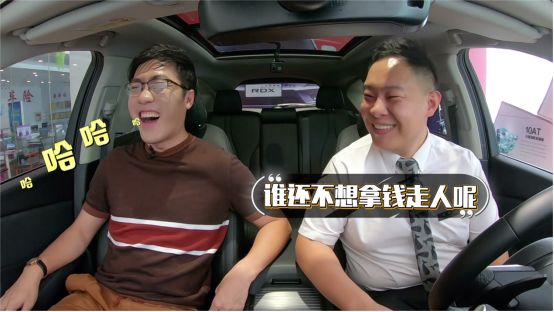 贾轩给老人说这台讴歌 RDX 是会让他产生驾驶欲望的车,老王表示怀疑,开过飞度的车主居然会说讴歌 RDX 有性能感!