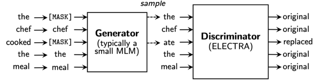 目前最佳的方法是 ELECTRA,该方法使用一个生成器替换输入序列中的词例,然后使用一个判别器预测哪个词例被替换了。