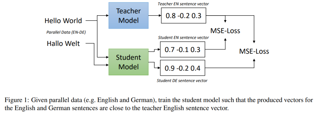 在论文「Scaling Laws for Neural Language Models」中,作者提出了一种简单高效的方法将现有的句子嵌入模型扩展到新的语言上,从而为不同的语言生成相似的句子嵌入。作者使用原始的单语言模型为源语言生成句子嵌入,然后根据翻译后的句子训练了一个新的系统来模仿原始模型。