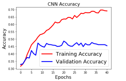 4680/4680 [==============================] - 2s 340us/step - loss: 1.4110 - acc: 0.3156 - val_loss: 1.3572 - val_acc: 0.3277