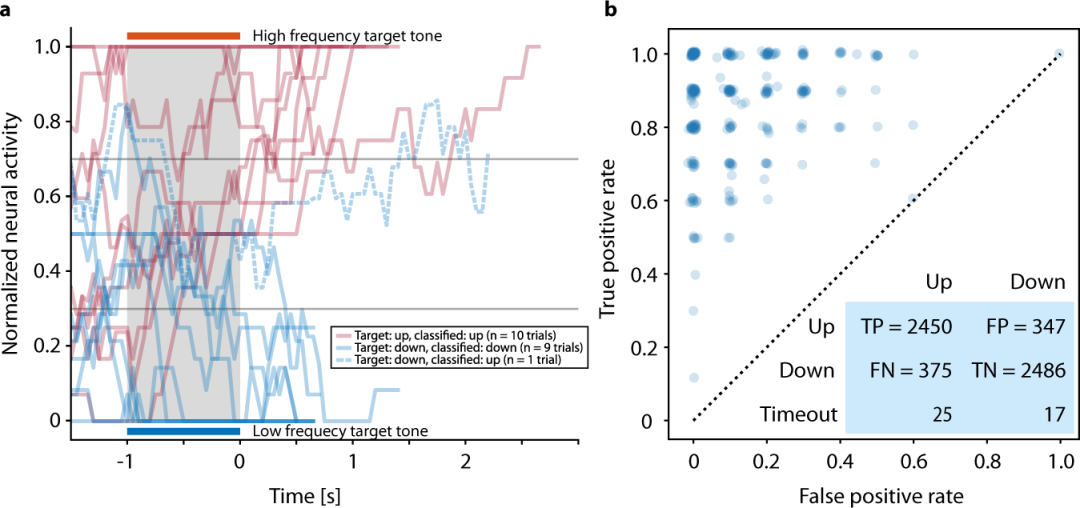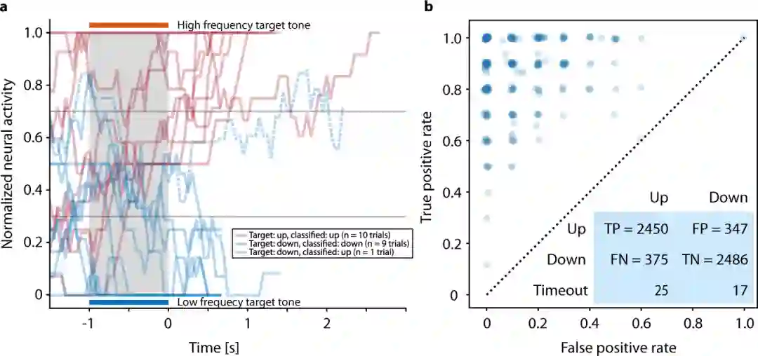 如此一来,实验对象能及时得到神经活动的听力反馈,作者也能指导实验对象通过控制大脑神经放电率,使反馈音的频率匹配目标音高。