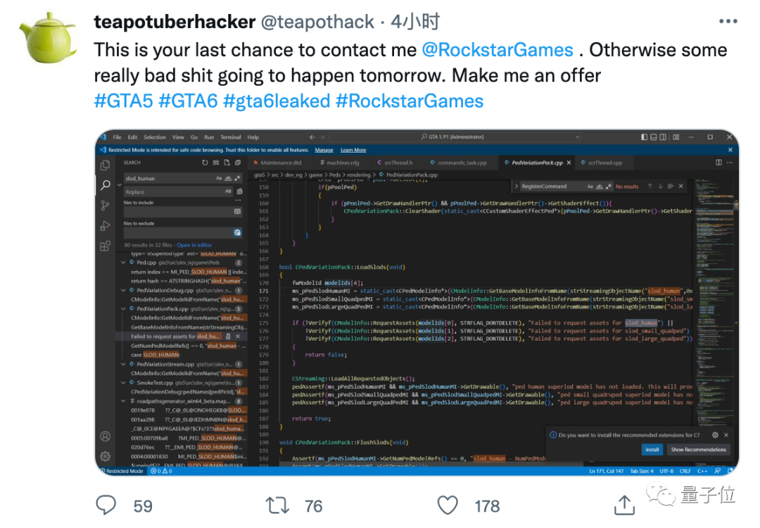 黑客声称已掌握两代游戏的源代码以及新作的早期测试版本,并嚣张地公开勒索R星: