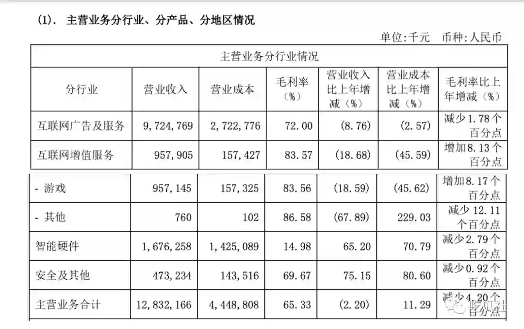 相比之下,互联网广告及服务的毛利率为72%,游戏业务的毛利率为83.56%。