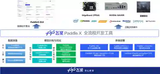 如果说飞桨的算法套件是包含了扳手、钳子等工具箱,那么PaddleX便更像是流水线上组装好的智能机械臂。其集成了PaddleClas、PaddleDetection、PaddleSeg、PaddleSlim、Paddle Lite等模块的能力,还把飞桨团队在这么多年积累下来的实操经验及技术能力,全部打包收录进来。从数据准备、模型训练与优化到多端部署,将深度学习开发全流程实现了端到端的打通,并且在开发流程各个环节中提供了最简洁、易用的API设计,将深度学习的能力输出给开发者。更特别的,飞桨团队还为大家实现了一个图形化GUI Demo,不仅可以使大家快速体验深度学习带来的益处,也为需要自主研发类似图形化界面/软件的开发者提供了很好的参照模板。把深度学习开发门槛直接拉到地板,这就是PaddleX带来的惊喜体验。