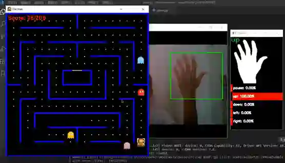 在AI Studio上,一位大神在玩腻了键盘鼠标操作的游戏之后,就利用PaddleX训练完成了手势识别模型,实现了用手势控制吃豆豆游戏!
