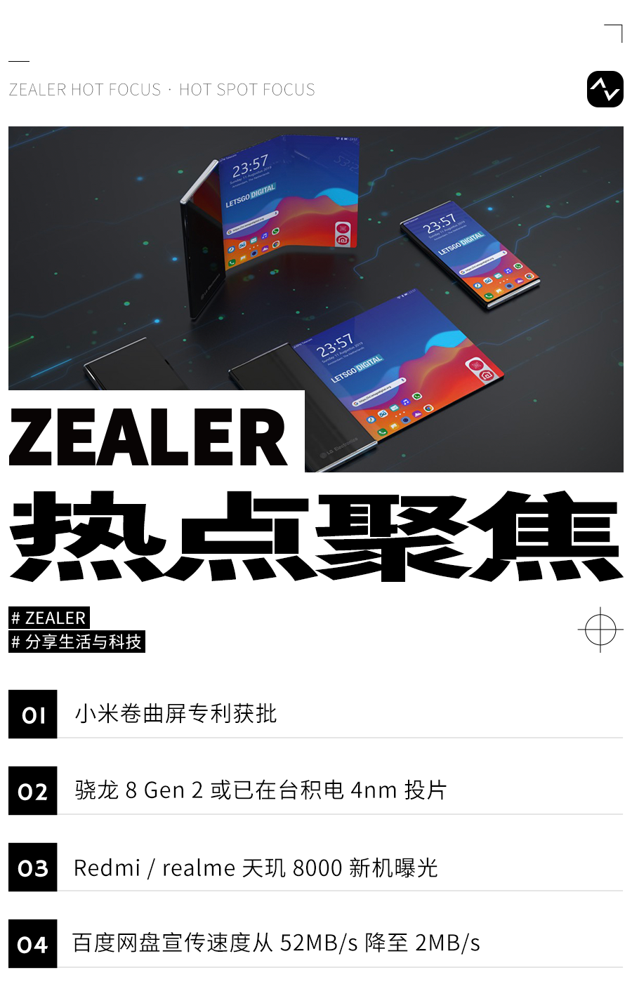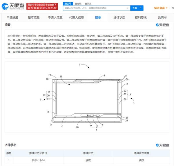 北京小米移动软件有限公司于近日获得了一项“折叠机构、卷曲屏结构及电子设备”专利授权。专利摘要显示,折叠机构包括第一移动板、第二移动板及连杆机构。该专利设置可使待卷曲物体在折叠状态和展开状态之间切换,待卷曲物体可为屏幕,实现屏幕和整机卷曲状态相互配合的功能,达到完整状态的屏幕缩放功能的目的,且缩小整机外观的形态。