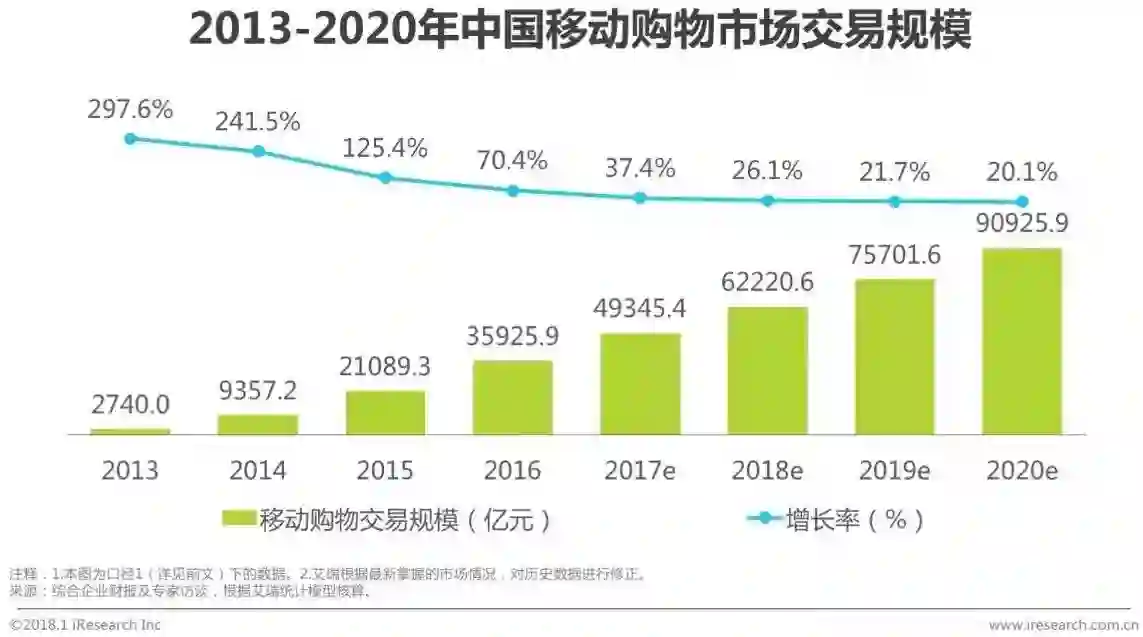 2017年中国移动购物市场交易规模预计达4.9万亿元,同比增长37.4%,增速逐渐放缓但仍保持了较高的增长水平。艾瑞分析认为,在中国零售市场线上线下加速融合的大趋势下,消费场景日益多元和分散,逐步构建起全渠道零售网络。移动端作为连接线上、线下消费场景的核心途径,得以进一步渗透发展。