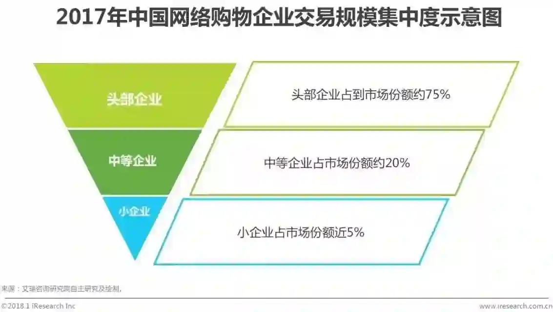 从网络购物企业市场规模来看,平台模式的大淘宝一家独大,在整体网购交易规模中占比74.3%。自营电商京东、特卖电商唯品会都是各自领域头部电商,但相较大淘宝的市场规模仍存在较大差距。小企业长尾明显,随着跨境、生鲜、母婴等垂直领域的火热,仍有大量初创企业涌现;此外品质电商如网易严选、米家有品等迎合消费升级的大趋势,不断向供应链端布局,市场发展态势良好。