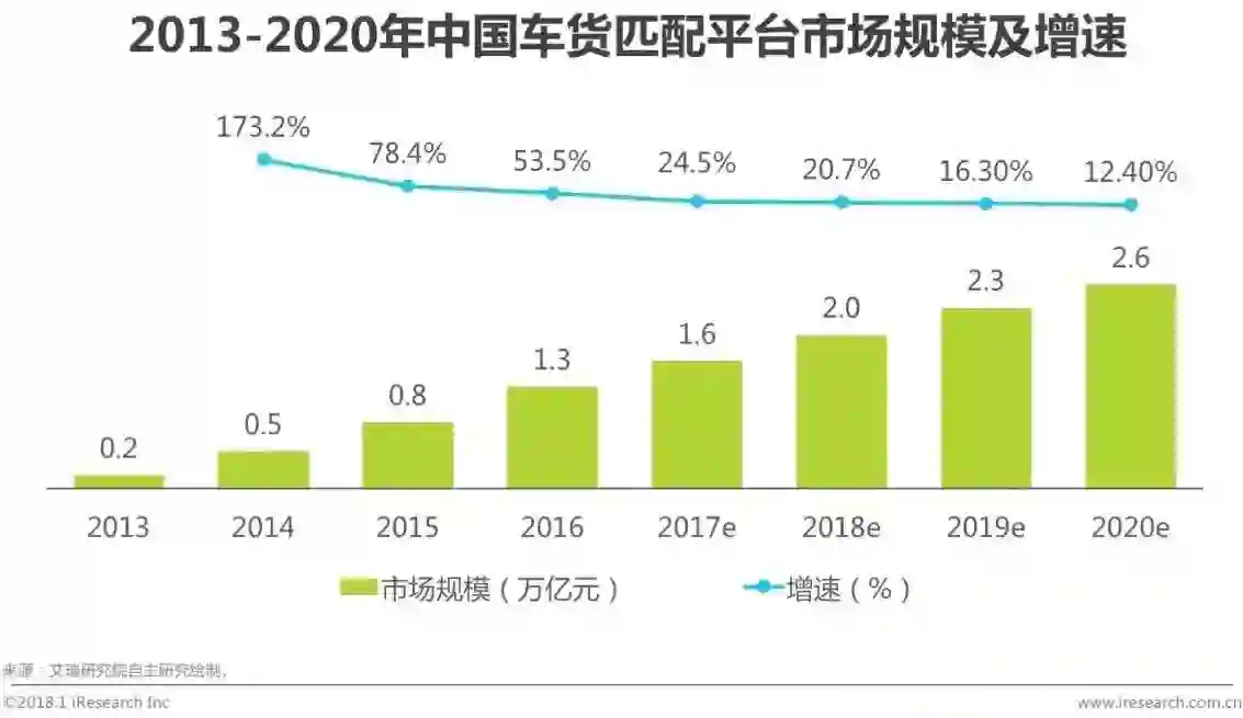 2017年车货匹配平台市场规模预计为1.6万亿,增幅24.5%